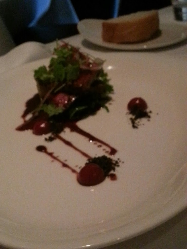 Slow cooked pork belly, five spice pear pudding, fennel salad, pressed apple, pedro ximenez jusAnother Asian dish, it is similar to the pork belly dish you can get from ChinChin (http://www.chinchinrestaurant.com.au/) except that at this restaurant you only get one pice of the pork belly whereas in ChinChin you can get more of it. However, I have to compliment on the pork belly is cooked to perfection. It melts in your mouth. Score: 6/10